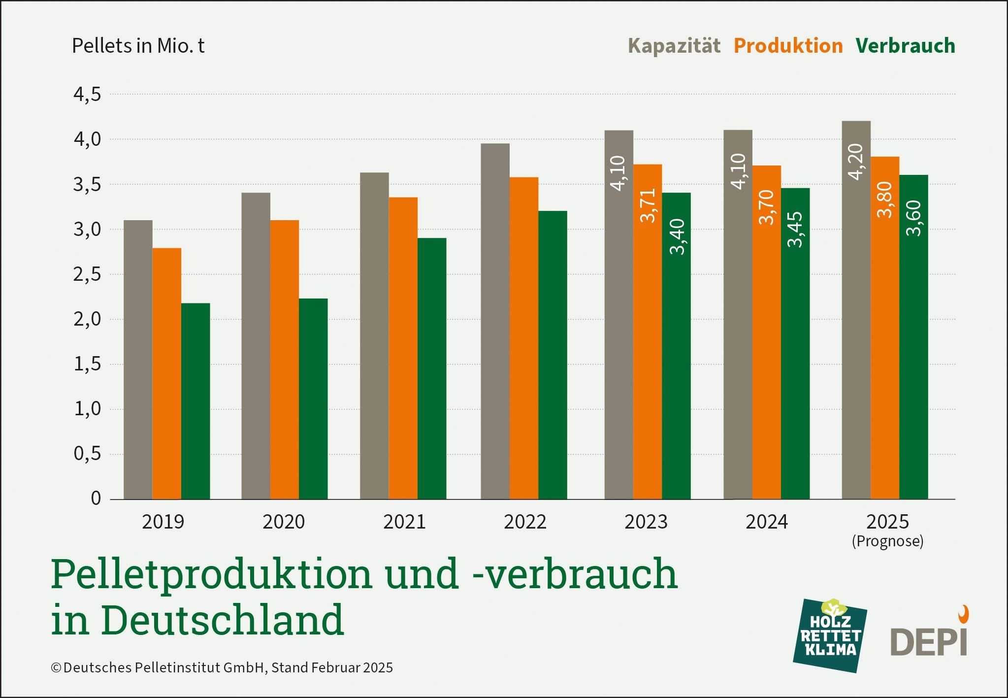 Pelletproduktion und -verbrauch in Deutschland