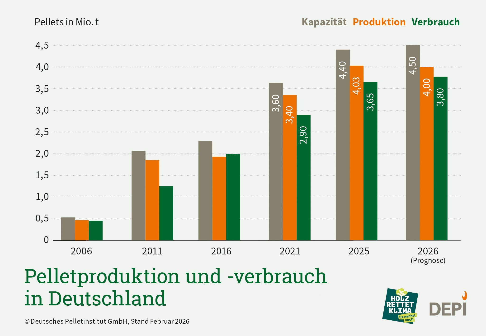 Pelletproduktion und -verbrauch in Deutschland 2006-2026