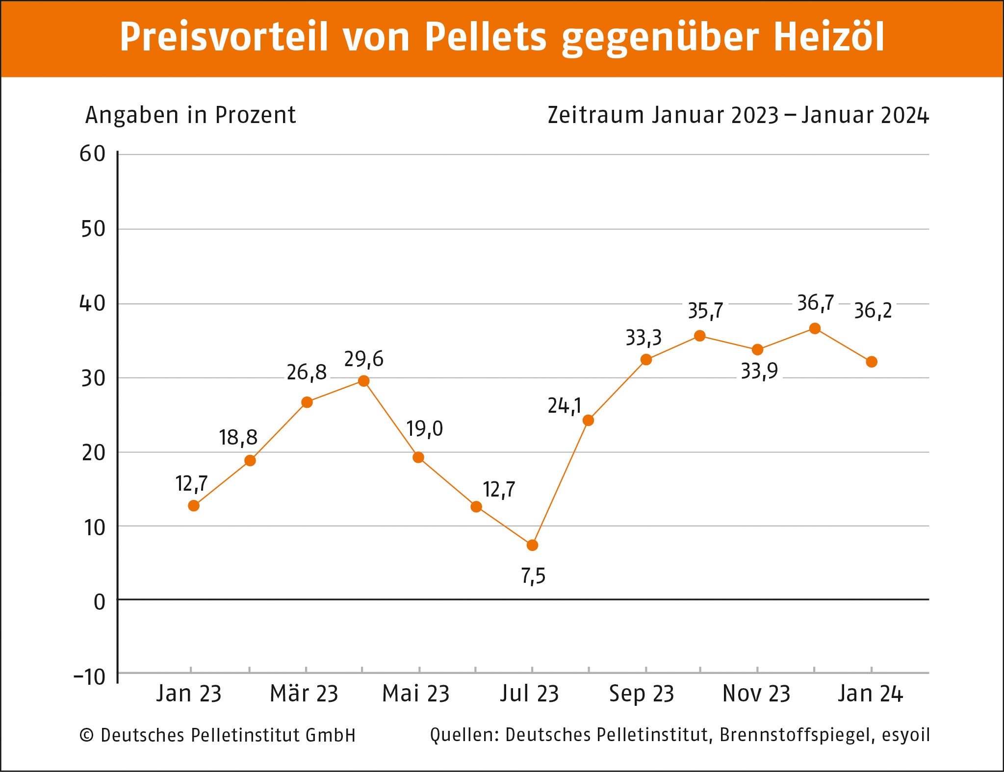 Preisvorteil von Pellets gegenüber Heizöl – Januar 2024
