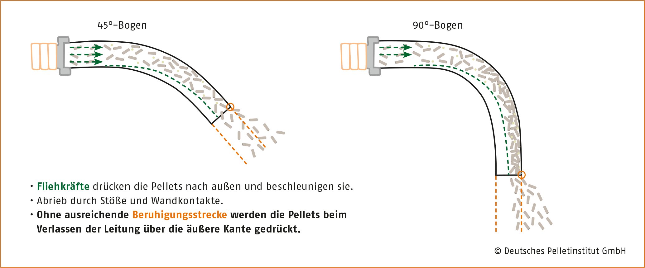 Strahlverhalten von Pellets in verschiedenen Bögen