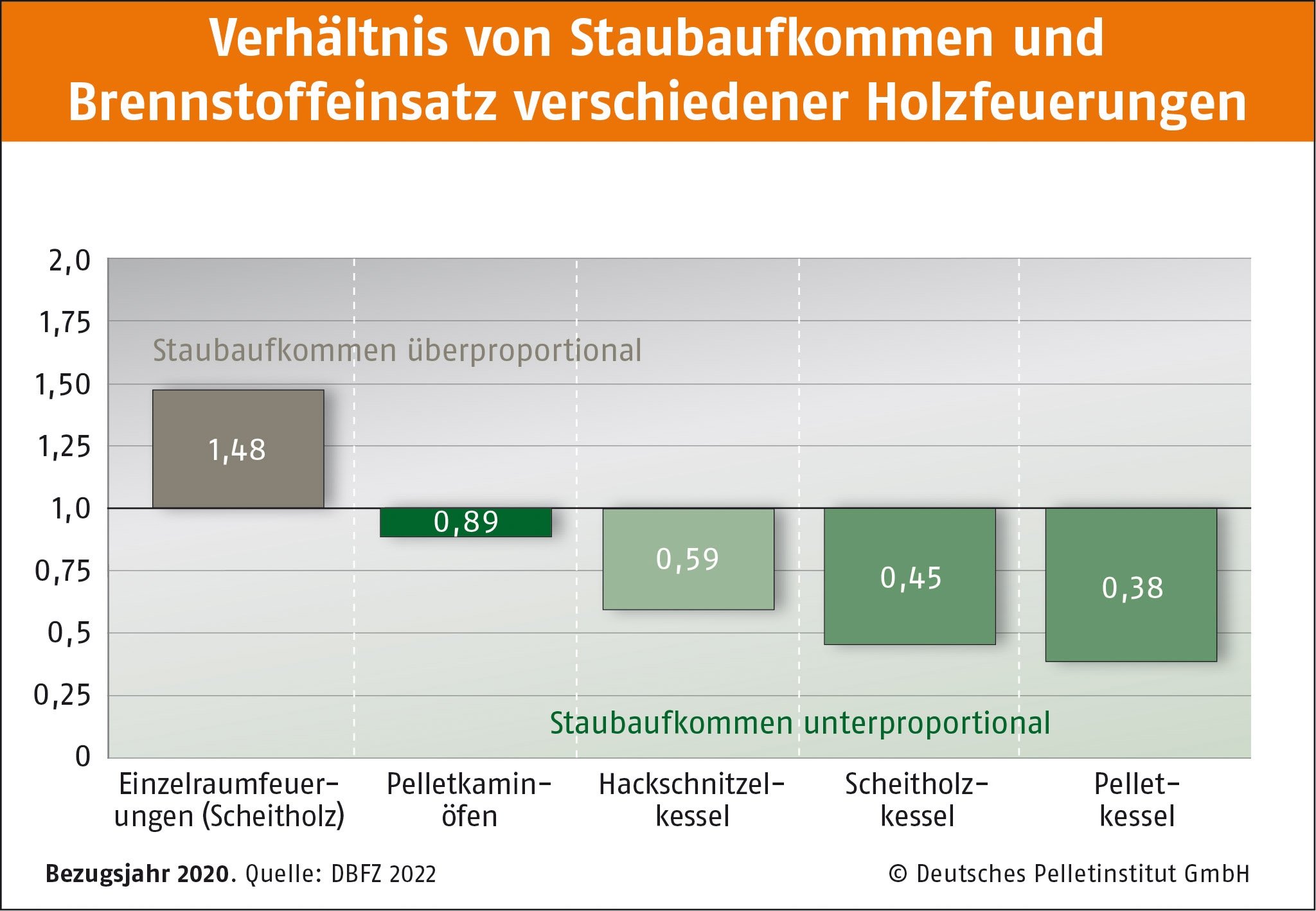Verhältnis von Staubaufkommen und Brennstoffeinsatz verschiedener Holzfeuerungen