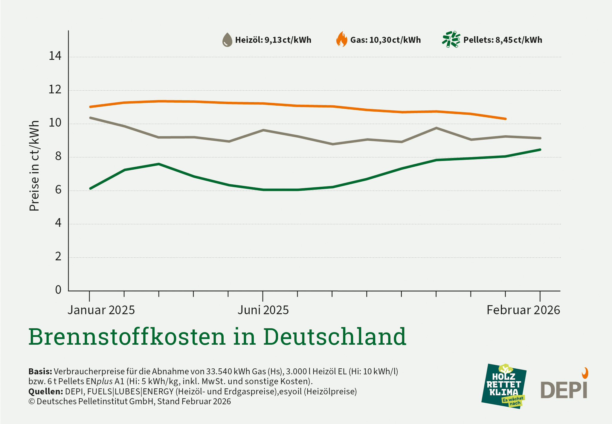 Die Verwendung der Daten ist für redaktionelle Zwecke honorarfrei. Abdruck bitte mit Quellenangabe Deutsches Pelletinstitut GmbH (DEPI). Alle Angaben ohne Gewähr.