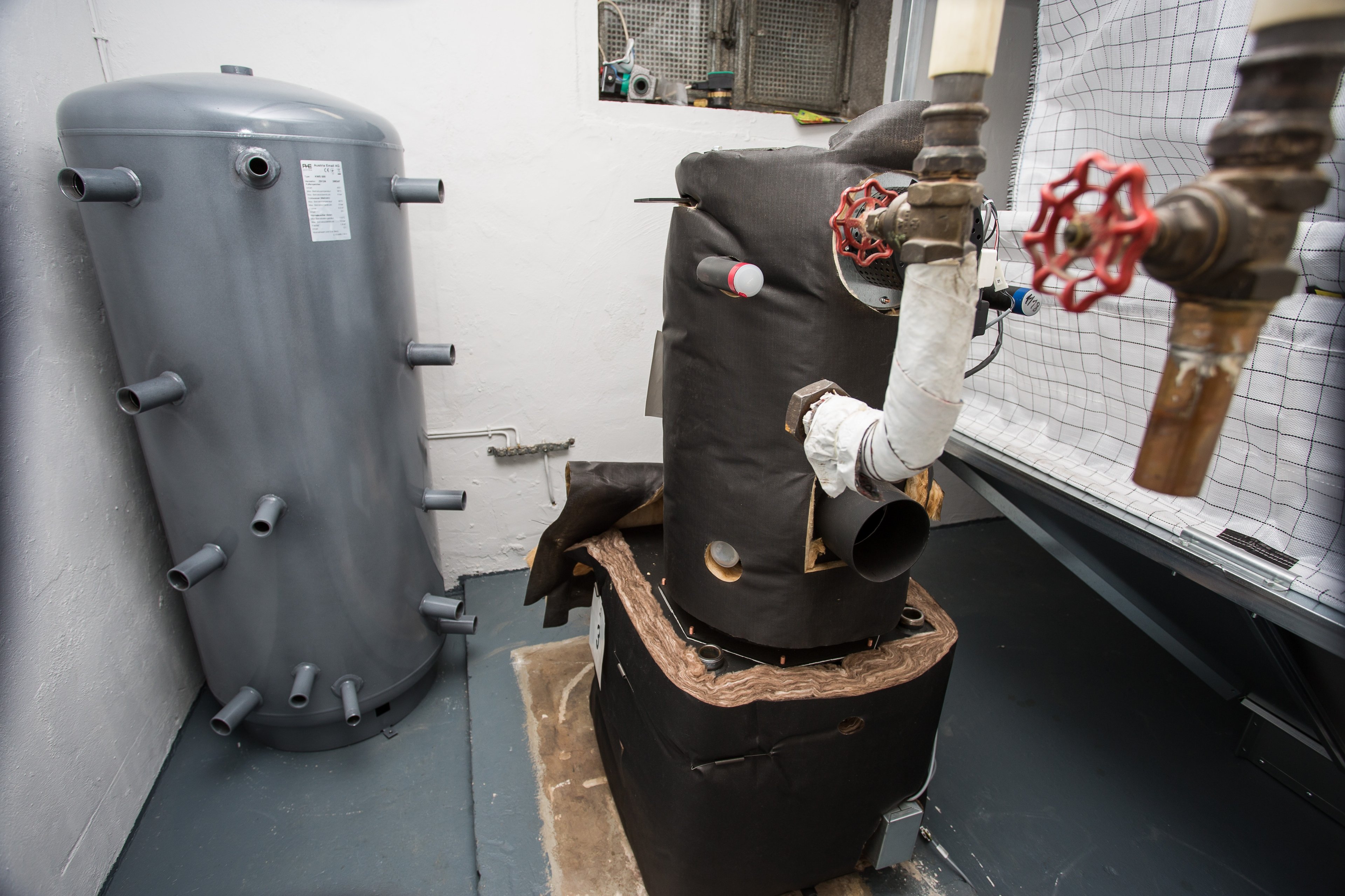Aufbau vom Pelletkessel mit Pufferspeicher