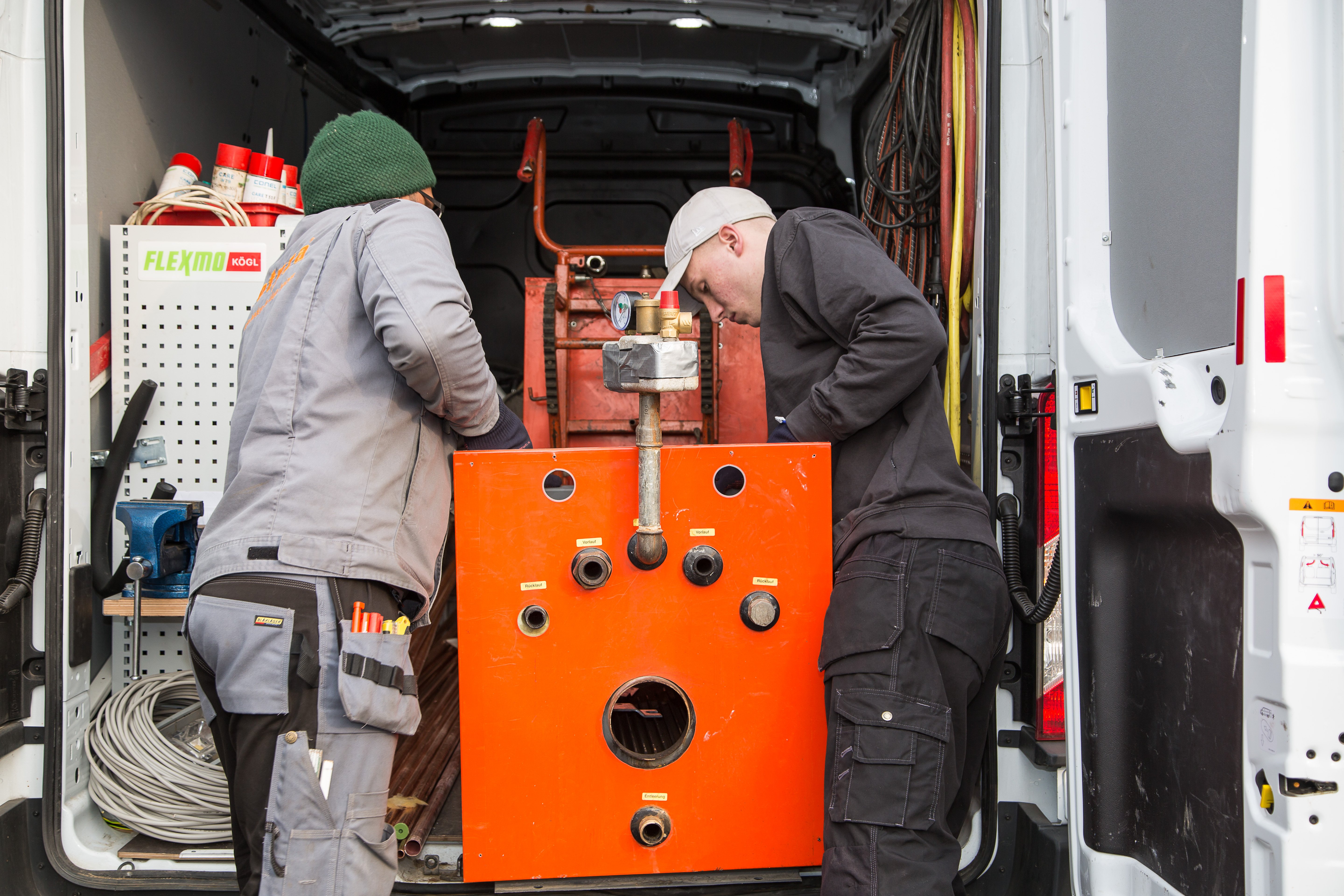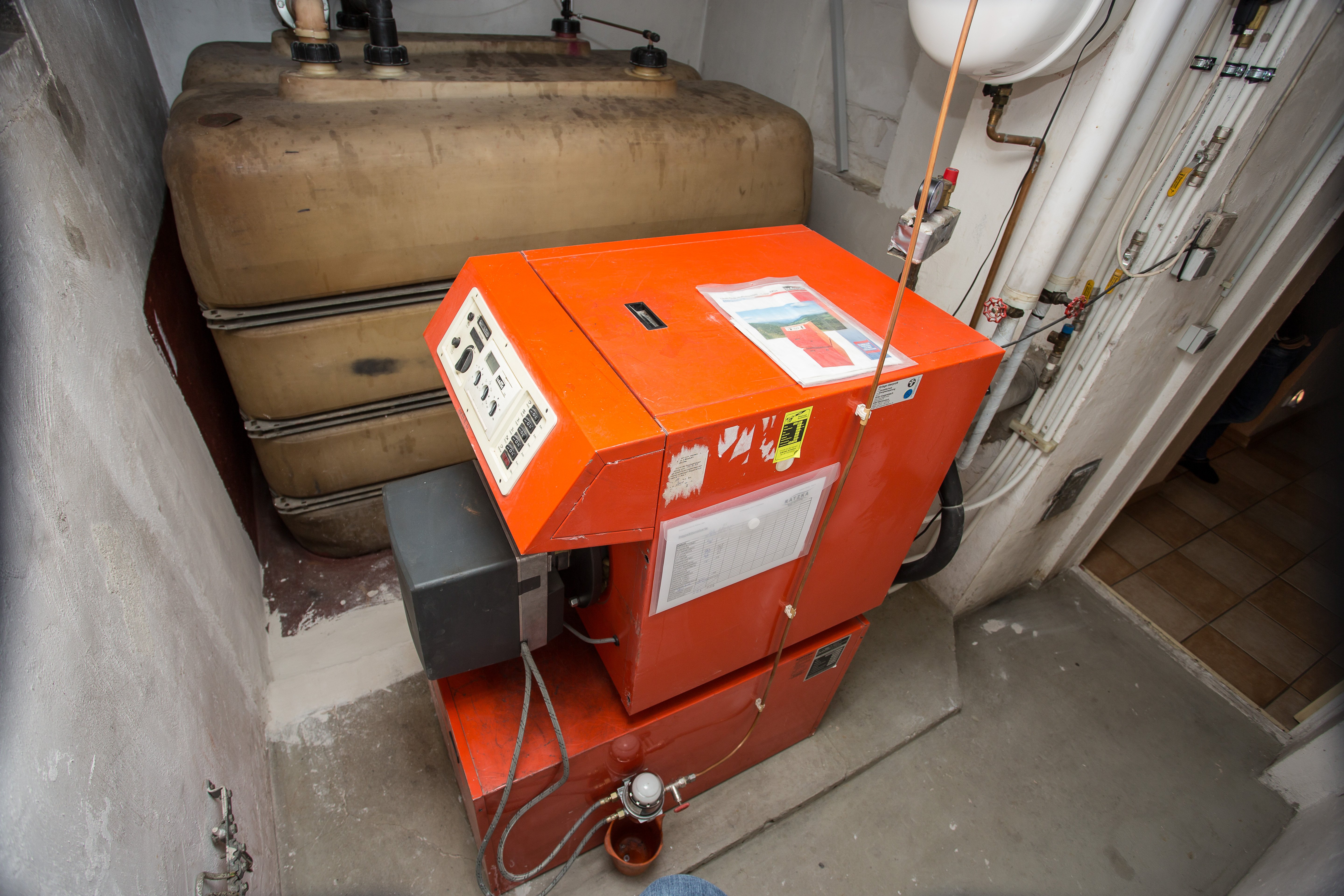 Der Ausbau und die Entsorgung der alten Ölheizung und des Öltanks wird mit 45 Prozent Zuschuss über das Marktanreizprogramm (MAP) gefördert. Aber erstmal muss der Oldie aus dem Haus geschafft werden!