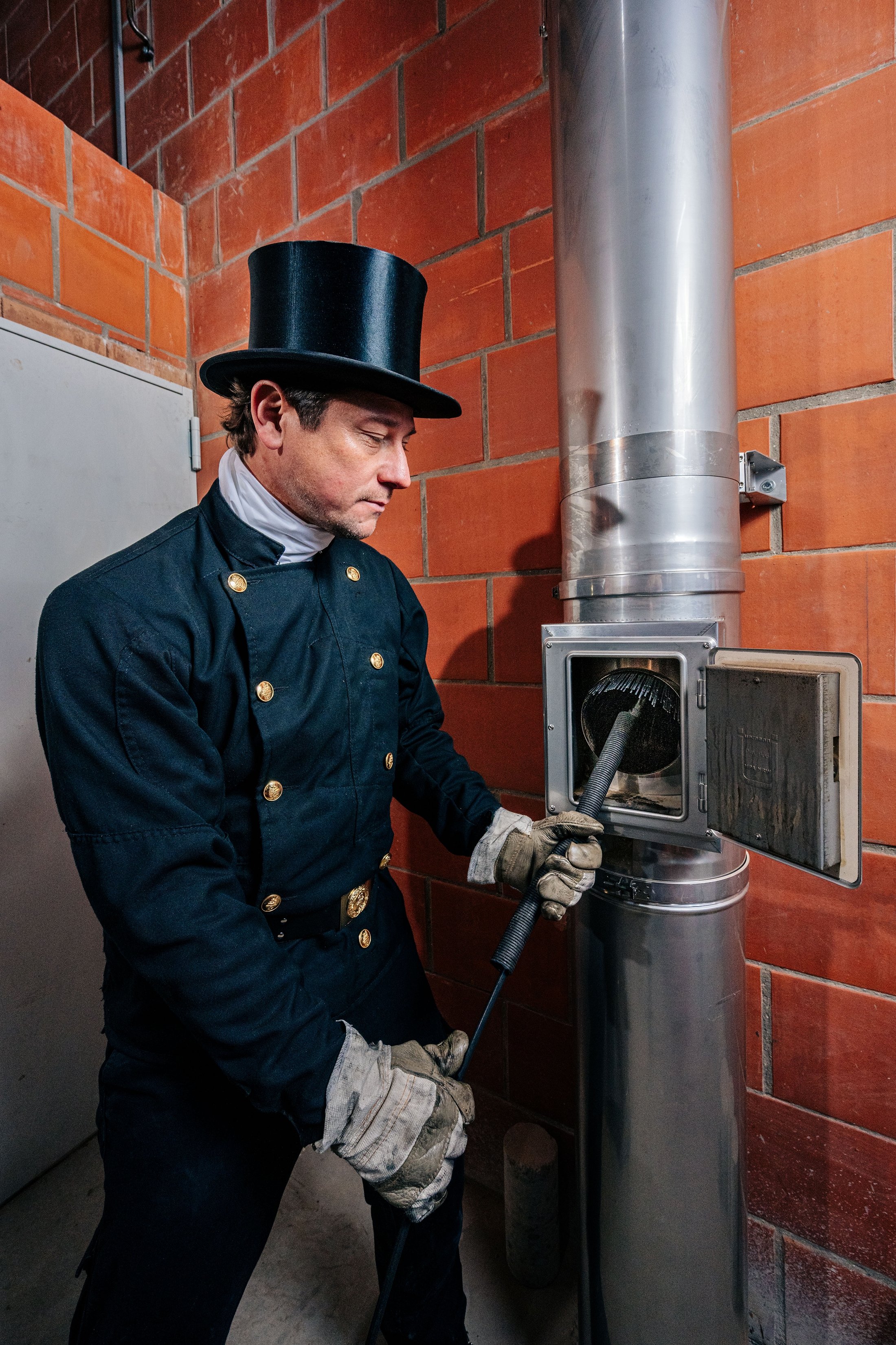 Schornsteinfeger reinigt den Schornstein